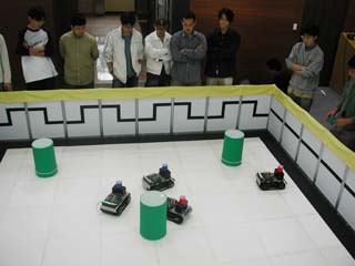 [1]: KAIST 유회준 교수님이 제안해서 만들어진, 산자부 주최의 대학생 자율 로봇 경진대회. 게임 시작 이후에는 참가자가 프로그래밍한 인공지능 프로그램에 의해서만 게임이 진행되며, 사용자가 조작할 수 없다는 점이 특징입니다.초기에는 레이저를 탑재한 전차형 로봇간의 2:2 전투 형식 가지고 있었지만, 이후에 태권 로봇으로 바뀌어서 상당시간 지속되었습니다. [http://www.u-socrobot.org/]