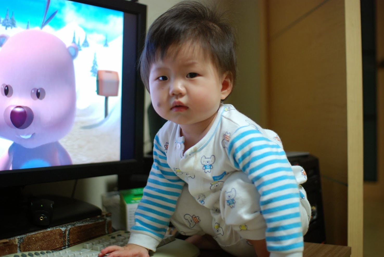 단점은 사진에서처럼 책상 위로 올라가서 노는 경우가 많아졌다는 겁니다. 책상위에서 춤을 춥니다.