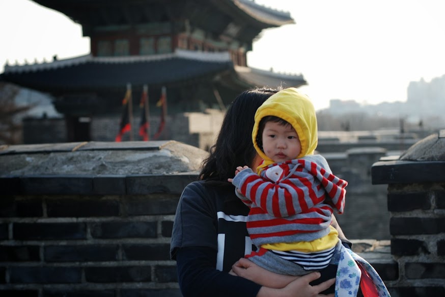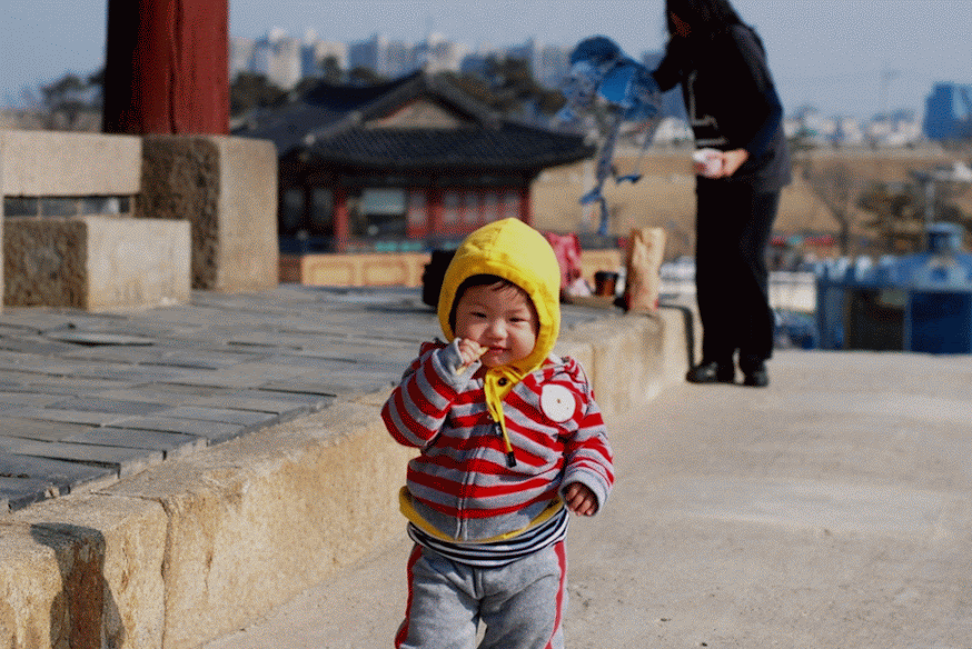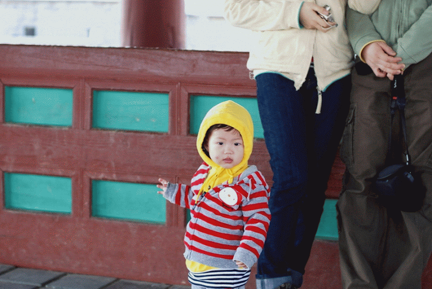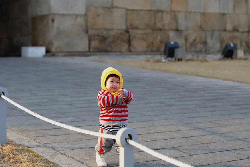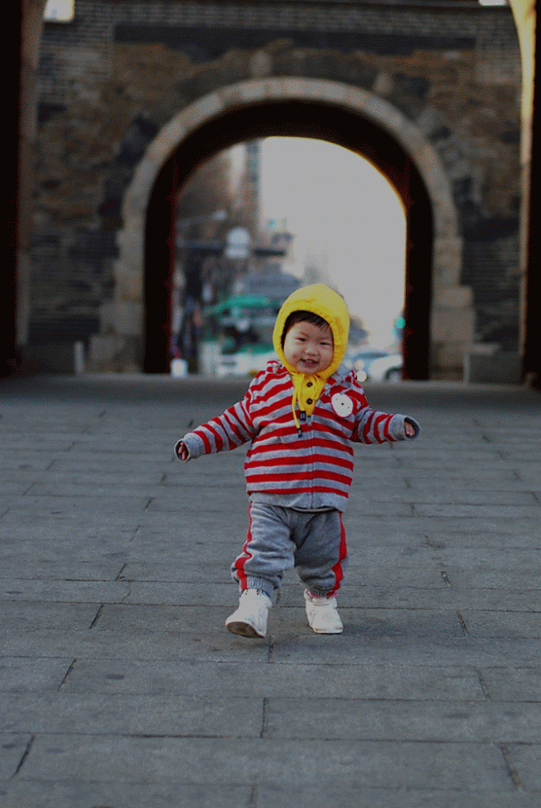 장안문에서 한컷. 옆에 비둘기가 있었는데, 비둘기를 보고 안아주고 싶었는지 달려오면서 안아주는 모습을 합니다. 계속 비둘기를 따라 다녔어요.
