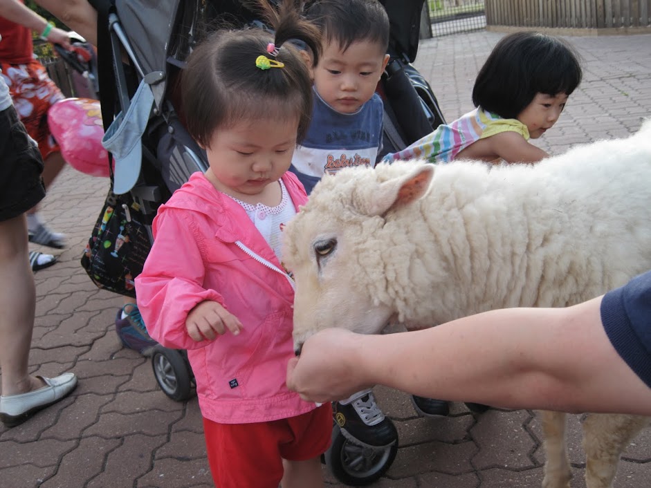 안사람 카메라의 사진들을 컴퓨터로 옮기면서 발견한 사진 지난 9월 1일 에버랜드에서 민혜가 양을 만져본 경험이에요. 조련사 아저씨가 양 먹이도 주셔서 민혜가 양한테 먹이도 주었었지요.